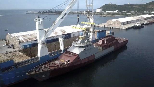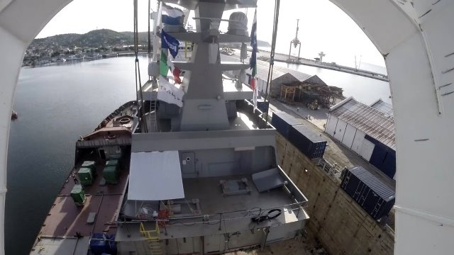 Un interesante video muestra como se monta directamente el bloque en la Patrullera tras sacarle una grúa de la bodega del “Rolldock Sun”, y tras haber abarloado el futuro navío de combate de la SEMAR al mercante holandés. Se han incorporado al bloque, en los astilleros de Damen, buena parte de los sensores construidos por la empresa Thales Nederland en su factoría de Hengelo, también en Holanda, entre las banderas que ondeaban del palo mayor en el momento del montaje se ve una con el nombre de esta compañía especializada en altas tecnologías.