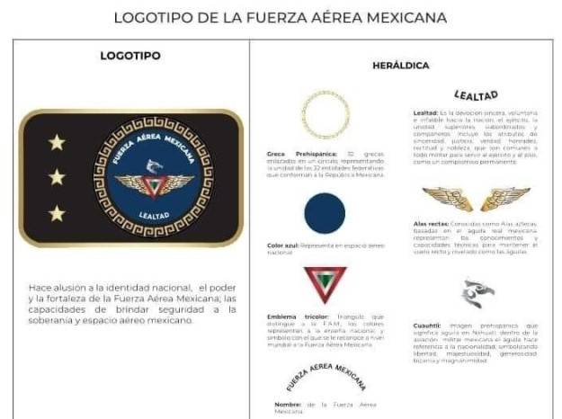 El de la FAM, además de eliminar la figura del emblemático F-5, incorpora las siguientes características de acuerdo con el texto de la Secretaría de la Defensa Nacional (SEDENA). La nueva imagen “hace alusión a la identidad nacional, el poder y la fortaleza de la Fuerza Aérea Mexicana; las capacidades de brindar seguridad a la soberanía y espacio aéreo mexicano”.