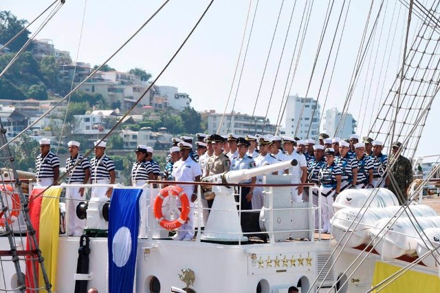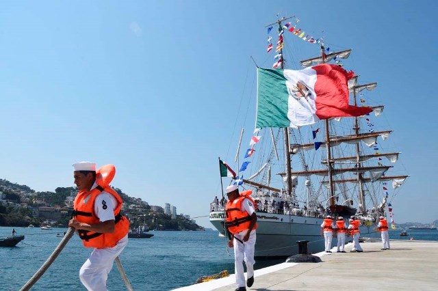 El buque zarpó con una tripulación de 234 marinos (17 mujeres y 217 hombres), incluyendo 42 cadetes y 6 oficiales extranjeros provenientes de Argentina, Brasil, Colombia, Guatemala, Italia y Perú. Viajaron además ocho capitanes, 47 oficiales, 43 Cadetes, 133 elementos de clases y marinería, así como nueve invitados de diversas instituciones nacionales y armadas de otros países. Los secretarios de Marina, almirante Vidal Francisco Soberón Sanz, y de la Defensa Nacional, Salvador Cienfuegos Zepeda, acudieron a recibir al buque acompañados por el gobernador del estado de Guerrero, Héctor Astudillo. (Jorge Alejandro Medellín)