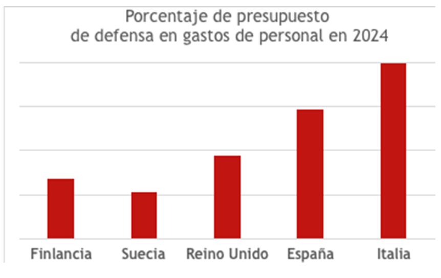 Además, junto con Suecia, es el país que, del presupuesto de defensa, menos dedica al personal, lo que contrasta con el gasto de España e Italia
