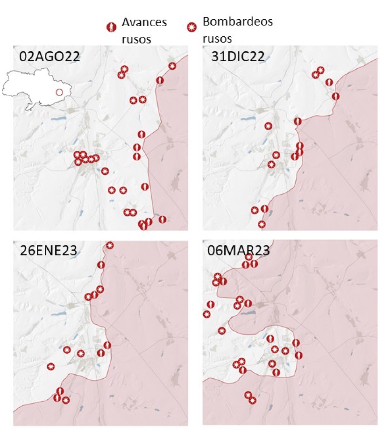 Bajmut. Evolución del asedio Fuente: ABC. Edición digital (6 de marzo de 2023)