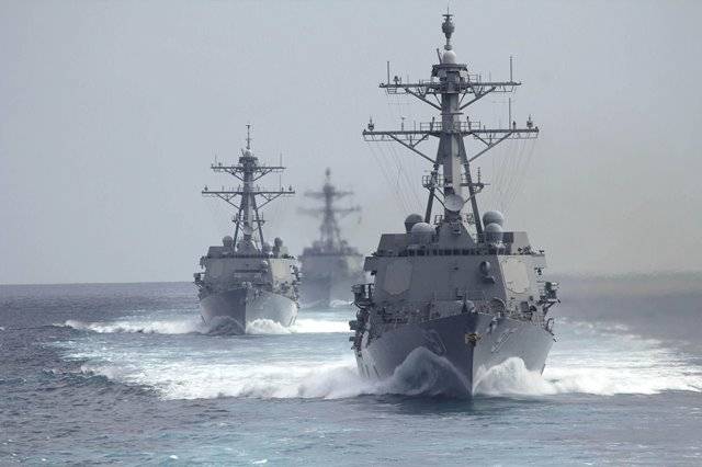 Fotografía: El USS McFaul y el USS Gonzalez en el golfo Pérsico después de pasar el estrecho de Ormuz.