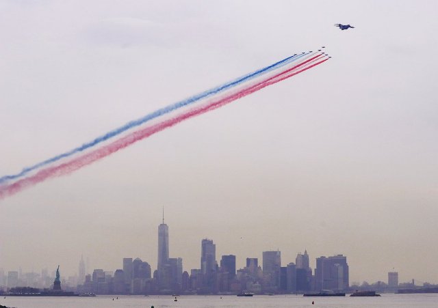 En total han sido ocho los Dassault /Dornier Alpha Jet A de la Patrouille de France, la más antigua de las patrullas del mundo, ya que data de 1931, los que, redecorados con una alusión a los colores de los Estados Unidos, han sobrevolado la ciudad de Nueva York. Miles de personas vieron, desde la zona de la Battery Park, en Manhattan, y desde la Isla de la Libertad el espectáculo de vuelo de los aviones franceses, que duró unos 10 minutos, y durante el que emitieron con humo los colores azul blanco y rojo.
