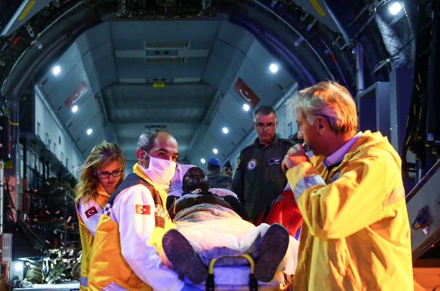 Según medios otomanos, tras llegar los pacientes a bordo de la aeronave a Turquía, fueron internados en los hospitales de Polatlı, Numune y Gülhane, sitos en Ankara. Akdağ añadió que un equipo de 33 miembros del Ministerio de Salud de Turquía, encabezados por el ministro Ahmet Demircan, se encuentra actualmente en Somalia para analizar la situación y la necesidad de un posible envío a Turquía de más heridos.