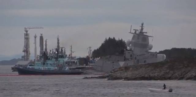 Fotografía: La fragata embarrancada en la costa (Dagbladet.net)