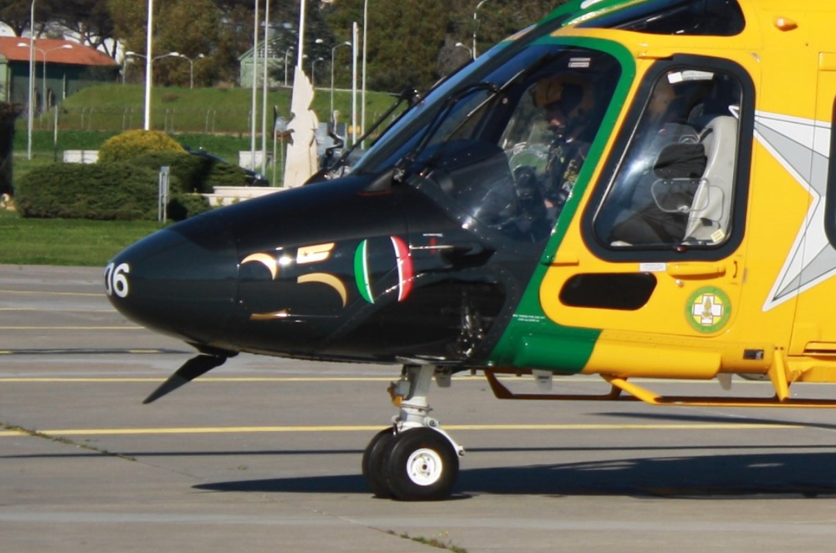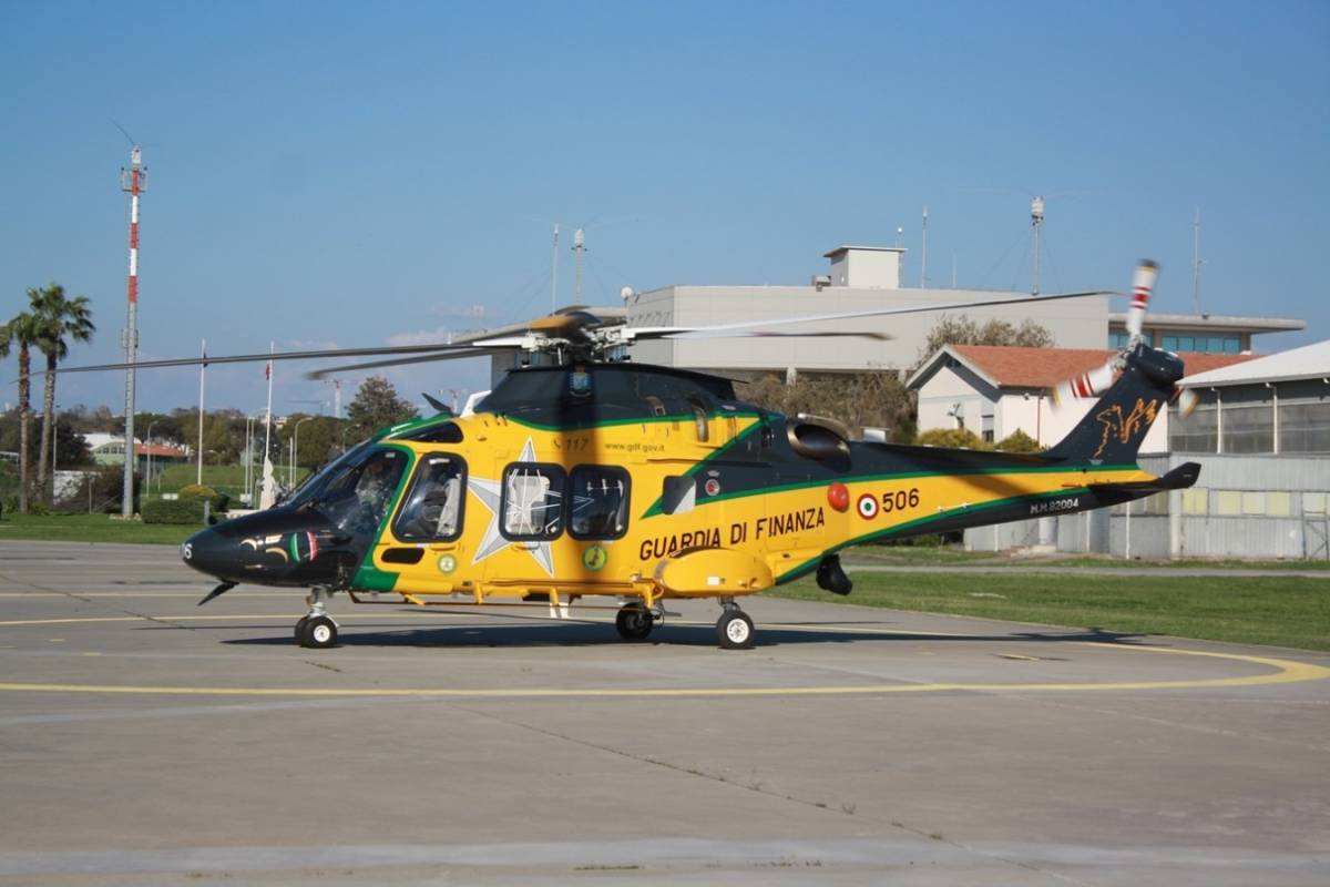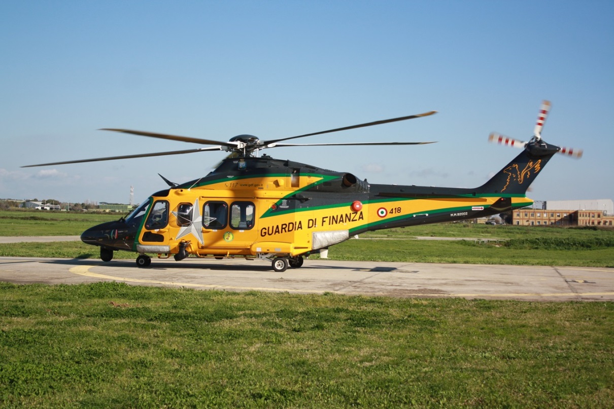 Desde la base aérea de Pratica di Mare, en las cercanías de Roma, nos llegan las imágenes portando ese anagrama, tanto de uno de los helicópteros de última generación Leonardo UH-169A (designación de la Institución del AW169) como de los más grandes del mismo fabricante PH-139D (AW139) de la Guardia di Finanza, que opera este cuerpo policial italiano en misiones principalmente de control del narcotráfico y contrabando.