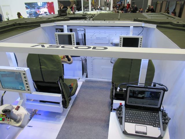 Sin duda la materialización más espectacular de estas posibilidades la constituye el blindado de cadenas ASCOD mostrado en el stand que puede operar como vehículo nodriza o puesto de mando desplegando y operando vehículos terrestres no tripulados. Desde el interior del vehículo configurado como puesto de mando, pudimos conocer cómo es posible por ejemplo operar el UGV (Unmanned Ground Vehicle) MUTT también mostrado en el stand así como su estación de armas de empleo remoto.