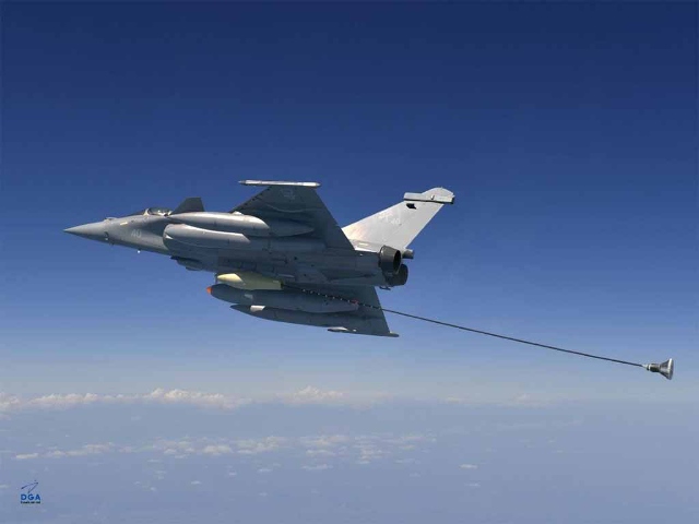 Los Rafale F3-R se convierten con este equipo en un elemento multiplicador de fuerza al dar combustible a otros aparatos similares incrementando su radio de acción. (DGA)