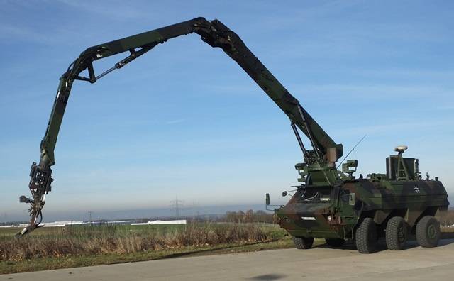 Con él, los artificieros del Bundeswehr, podrán realizar ahora el reconocimiento e identificación de objetos sospechosos desde una distancia segura. Los nuevos sistemas producidos en serie está ya en marcha, con la idea de realizar las entregas durante este año. Permitirá al personal destinado a la desactivación de artefactos explosivos, que opera todo el conjunto desde la cámara de combate del KAI, investigar lugares sospechosos, así como examinar e identificar las trampas explosivas u otros tipos de explosivos, minas o IED con gran precisión y desde posiciones seguras. Además de los elementos básicos, el manipulador puede acomodar a otras dos herramientas adicionales. Una de ellos es un sensor dual de 80 cm., que se puede utilizar para la investigación durante la marchas, está destinado a detectar zonas sospechosas y determinar si allí hay artefactos enterrados.