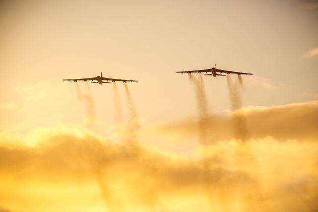 Fotografía: Dos de los seis B-52 de la 5ª Ala de Bombardeo a su llegada a Reino Unido el pasado 22 de agosto (USAF)