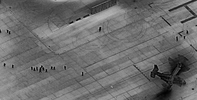 Fotografía: Vista nocturna de los Marines del SPMAFTF-CR-CC desembarcando en la embajada de Estados Unidos en Irak. (foto: USMC)