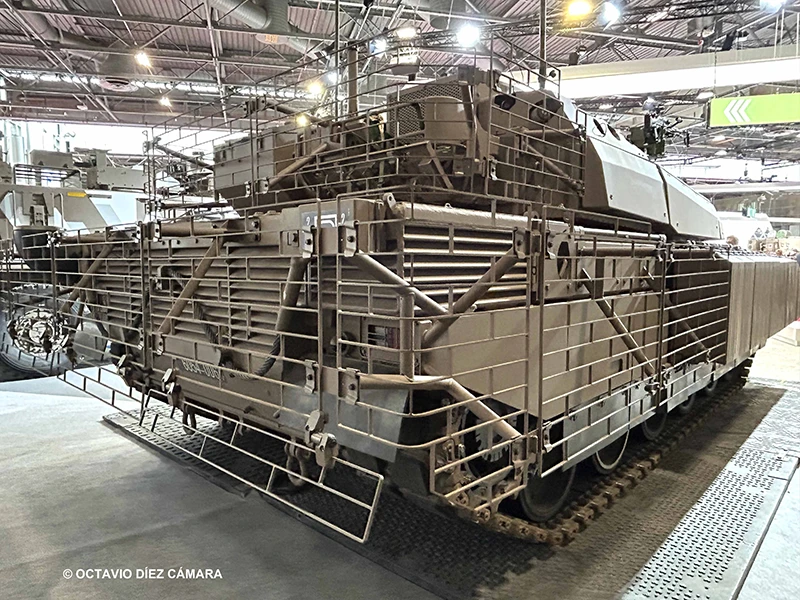 Sobre lo que supone el proceso, por lo que conocemos, va a durar al menos una década en completarse y podría tener a futuro algunos cambios en las actuaciones que se están realizando ahora. En el Leclerc XLR hay cambios que se observan a simple vista, pudimos verlos en el salón parisino de Eurosatory, como la mejora de la protección con una rejilla que cubre buena parte del exterior de la barcaza en la zona trasera y gruesos módulos de blindaje en los costados de la parte delantera, y otros más técnicos que se incluyen en sus equipos y capacidades.
