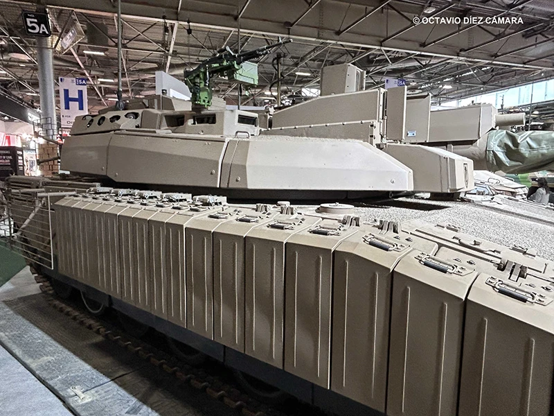 Llama la atención los módulos que mejoran la protección de barcaza y torre, y el tono marrón general del Leclerc XLR. Foto: Octavio Díez Cámara