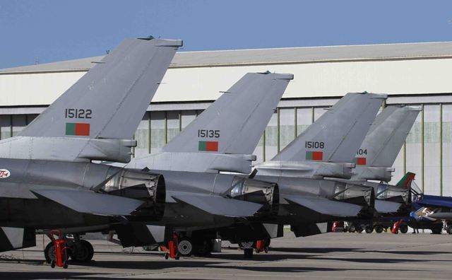 Fotografía: Línea de F-16 de Portugal. Foto: Julio Maíz.