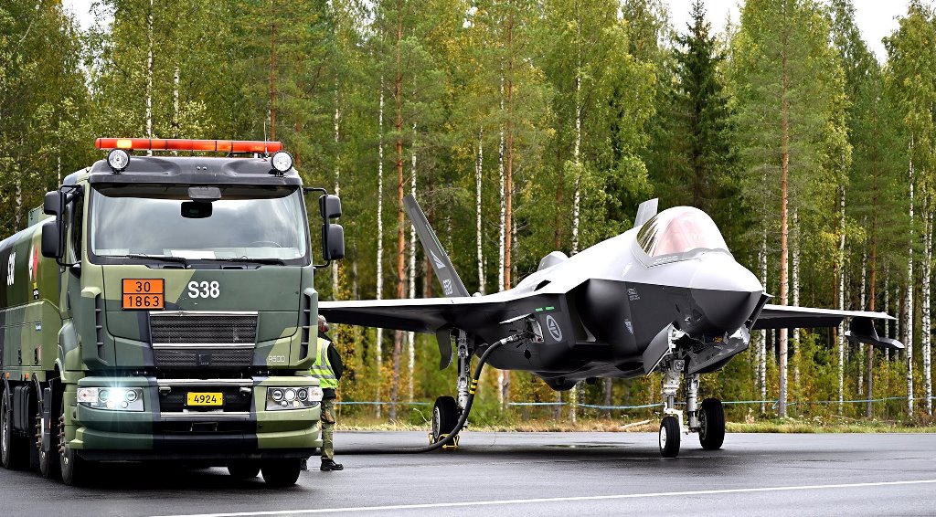 Repostaje en caliente de un F-35A noruega, durante el ejercicio realizado en Finlandia. (foto Fuerza Aérea de Finlandia).