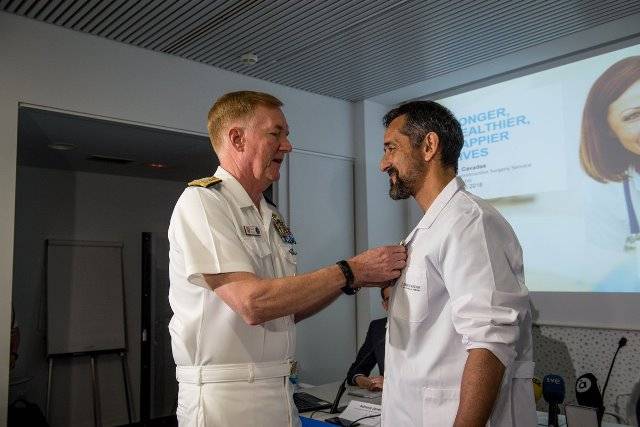 El cirujano español Pedro Cavadas ha sido acreedor de una medalla de la Marina de Estados Unidos por haber reimplantado con éxito la mano derecha a un marino de la US Navy que sufrió la amputación el pasado 27 marzo, cuando se encontraba a bordo de un submarino nuclear, asignado en aquel momento a la VI Flota norteamericana, cuya área de responsabilidad cubre tanto Europa como África incluido el Mar Mediterráneo.