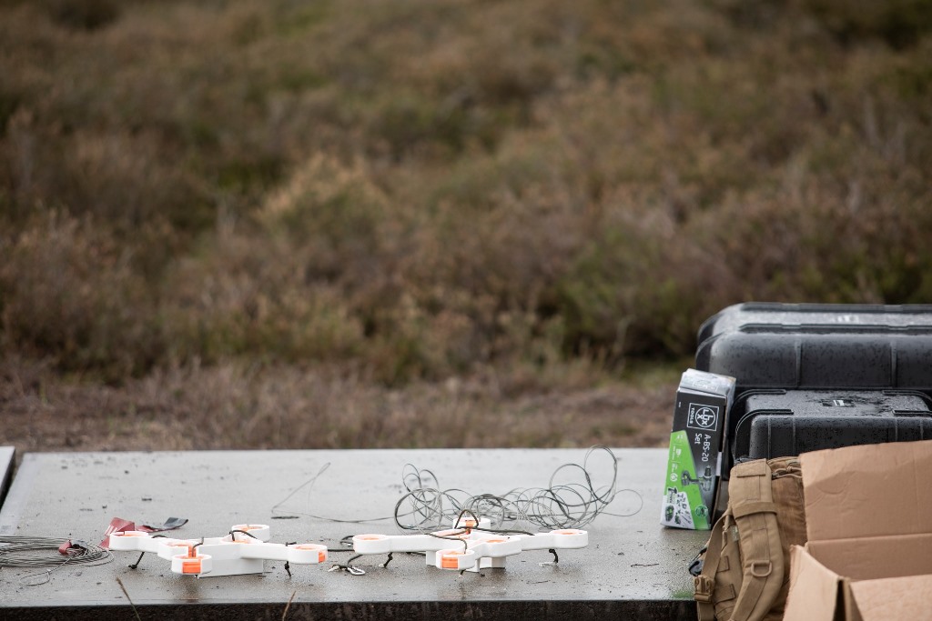 El tipo de blancos empleados en el entrenamiento nos sugiere el tipo de UAVs que se pretende abatir, micros comerciales (Fuerza Aérea de Bélgica)
