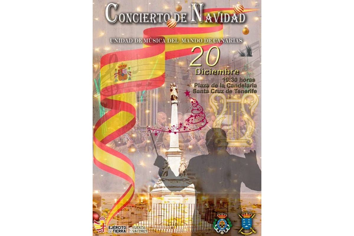 La capital tinerfeña acogerá este viernes, 20 de diciembre, a las 19:30 en la Plaza de la Candelaria, el tradicional concierto navideño que interpretará la Unidad de Música del Mando de Canarias del Ejército de Tierra junto a la Banda de Guerra N.º 2 de la Brigada Canarias XVI bajo la dirección del teniente músico Manuel Castrejón. Actuará el coro del colegio y conservatorio “Hispano-Inglés” y contará con la participación del tenor Giancarlo Santelli y el barítono, teniente coronel, Antonio Alberto González.