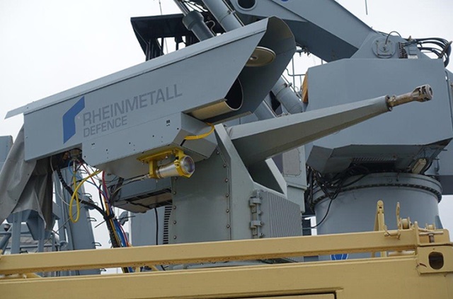 Alemania ya probó un efector láser de alta energía instalado al lado de un montaje naval automático en el año 2015. Fotografía (Rheinmetall)
