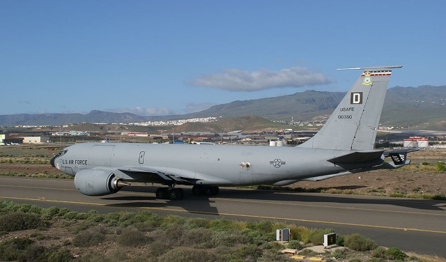 Fotografía: Uno de los KC-135 del 100 ARW durante un despliegue en Gando. Foto: Julio Maíz/defensa.com.