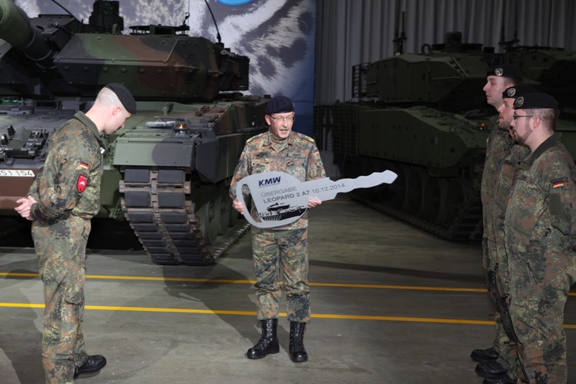 En el acto de entrega al Ejército alemán de los 20 Leopard estuvieron presentes el presidente de KMW, Fran Haun, el Teniente General Rainer Korff, quien como inspector general acepto la entrega de los blindados al Ejército y el embajador de Canadá en Berlín, como parte del acuerdo global de trabajo conjunto que empezara en el año 2007. (Antonio Ros Pau)