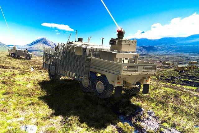 Fotografía: Los británicos ya han iniciado las pruebas de un sistema láser de alta energía para hacer frente a la creciente amenaza que suponen los drones en el campo de batalla. (Raytheon UK)