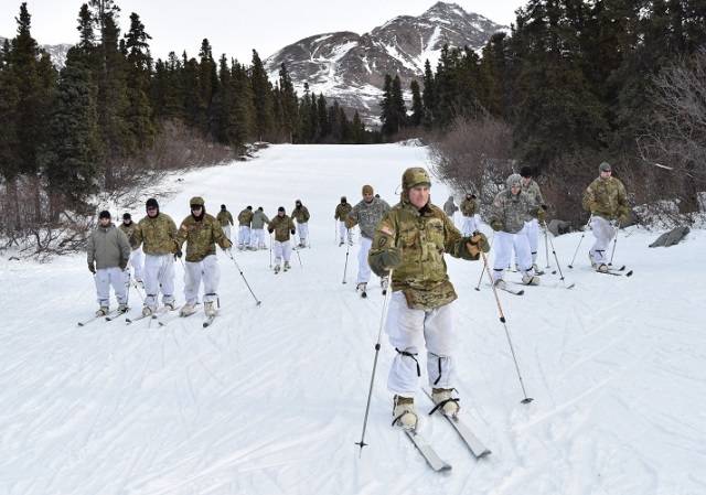 Fotografía: Personal del US Army practicando técnicas de sky en el centro de entrenamiento denominado “Northern Warfare Training Center” (Alaska). (foto US Army).