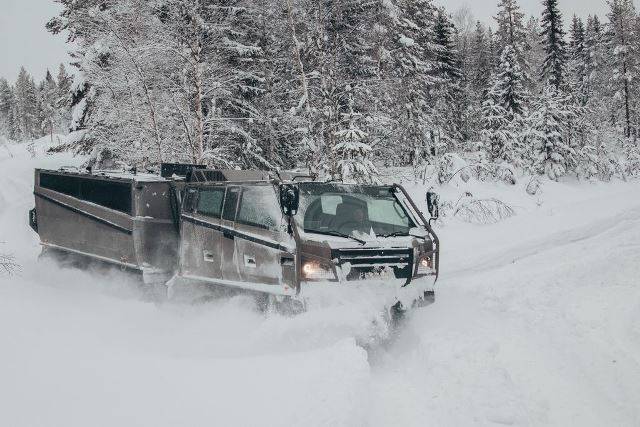 Este conocido vehículo, en servicio desde comienzo de la década de los ochenta es claramente reconocible por su diseño basado en dos módulos sobre cadenas unidos por una transmisión, configuración que se ha mostrado muy válida para operar no solo en nieve, sino también en zonas montañosas, desiertos o pantanos.