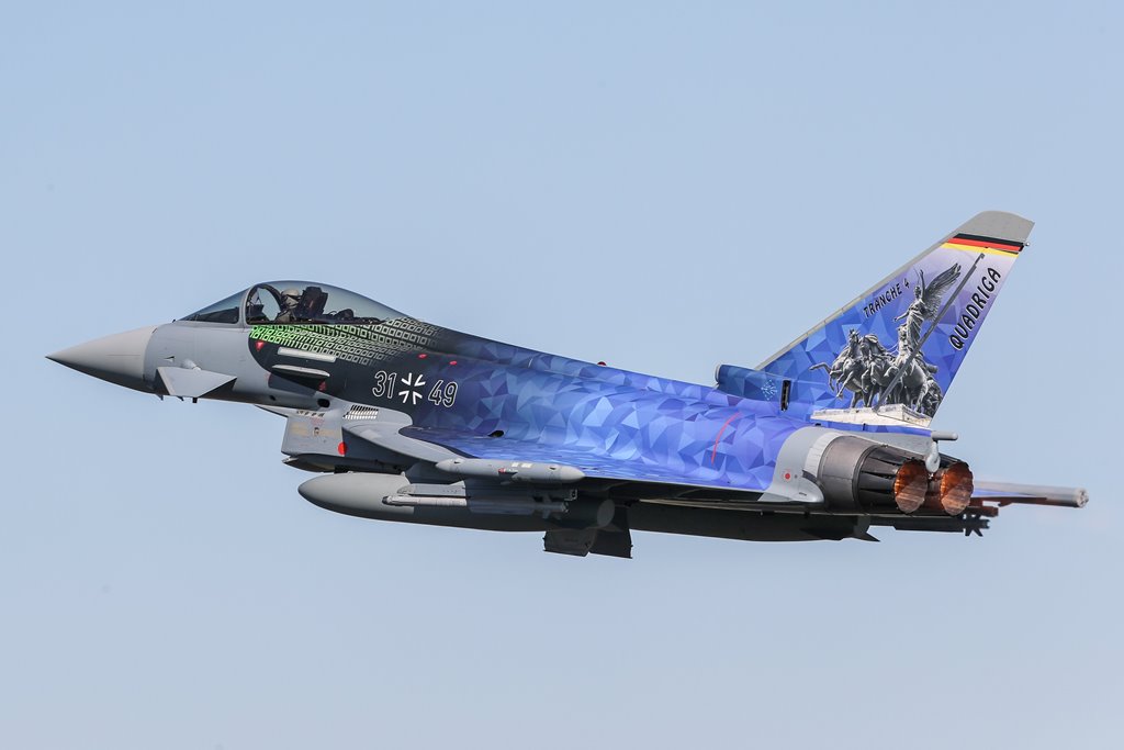 Uno de los actuales Eurofighter de la Luftwaffe pintado para promocionar el programa Quadriga. (Foto Bundeswehr)