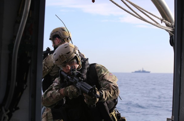 Consistió en el abordaje del HMS Sabre por parte de la tripulación del HMS Richmond mientras el helicóptero tipo Lynx de éste último sobrevolaba la nave abordada. El HMS Richmond está actualmente en Gibraltar para abastecerse de provisiones básicas antes de dirigirse a Oriente Medio, donde llevará a cabo operaciones de seguridad marítima y de patrullaje contra el narcotráfico y la piratería en el marco de la política a largo plazo del Reino Unido en la región.