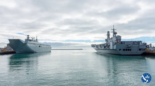 El 2 de febrero la Base Aeronaval de Rota (Cádiz) acogió, de manera excepcional, dos tercios de los navíos de la UE (Unión Europea) con capacidad de operar con aviones de combate de ala fija: el italiano “Cavour” (C 550) y el español “Juan Carlos I” (L-61), buque insignia de la Armada española.