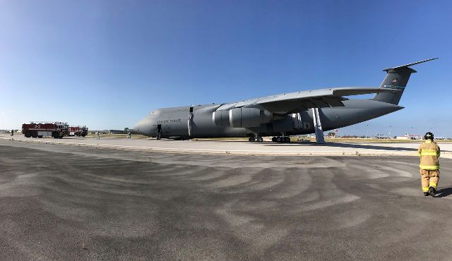 Un gigantesco avión de transporte C-5M Galaxy de la Fuerza Aérea de los Estados Unidos protagonizó un aterrizaje de emergencia en la base aeronaval de Rota (Cádiz) al no poder abrir el tren de aterrizaje delantero. Cada día suelen llegar a la Base Naval de Rota, que pertenece a la Armada española, varios transportes de la United States Air Force (USAF), son principalmente Boeing C-17 Globemaster III, pero también veteranos Lockheed C-5 Galaxy, aunque modernizados, como sería el que nos ocupa, que es el C-5M matriculado 86-0020. En su cola se aprecia una banda azul y el termino Dover, por lo que sería uno de los que operan la 436th Airlift Wing (ala de transporte) desde la Dover Air Force Base, sita en el Estado de Delaware (Estados Unidos).
