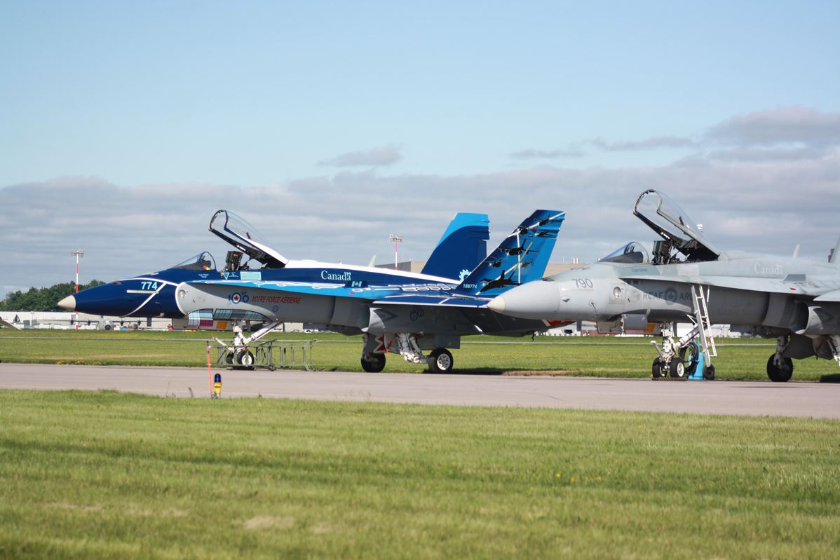 Imagen, de dos de los CF-18 de la RCAF, el de la izquierda es el asignado al Demo Hornet 2024. (Foto Stephane Andris)