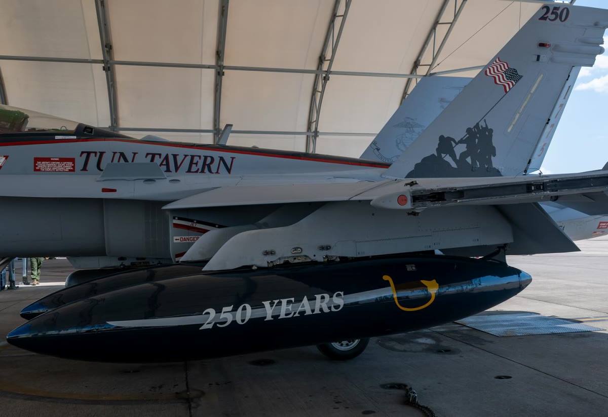 El avión “250 aniversario” recuerda la rica historia del USMC y su rama de Aviación o Marine Aviation, haciendo hincapié en los principales lemas e hitos del Cuerpo. En la parte superior de su fuselaje figura el nombre de Tun Tavern, taberna que estaba ubicada en Filadelfia donde en noviembre de 1775 se reclutaron los primeros marines, por lo que es considerada el lugar de nacimiento tradicional, aunque también figura pintado el lema actual de "Semper Fidelis.