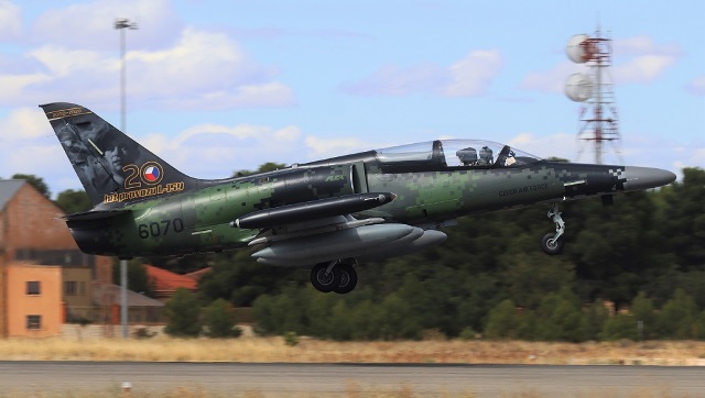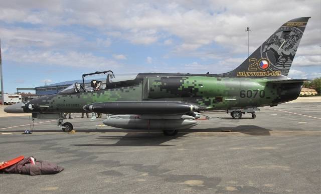 Entre las múltiples aeronaves que en la base aérea del Ejército del Aire español de Albacete están participando en el curso de vuelo del TLP (Tactical Leadership Programme/Programa táctico de líderes de Formación), destaca un avión de combate Aero Vodochody L-159 especialmente decorado para celebrar los 20 años en servicio de este modelo en la Fuerza Aérea de Chequia.