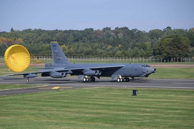 Fotografía: Un B-52H de la base de Barksdale aterrizando en la de RAF-Fairford. (foto: USAFE).