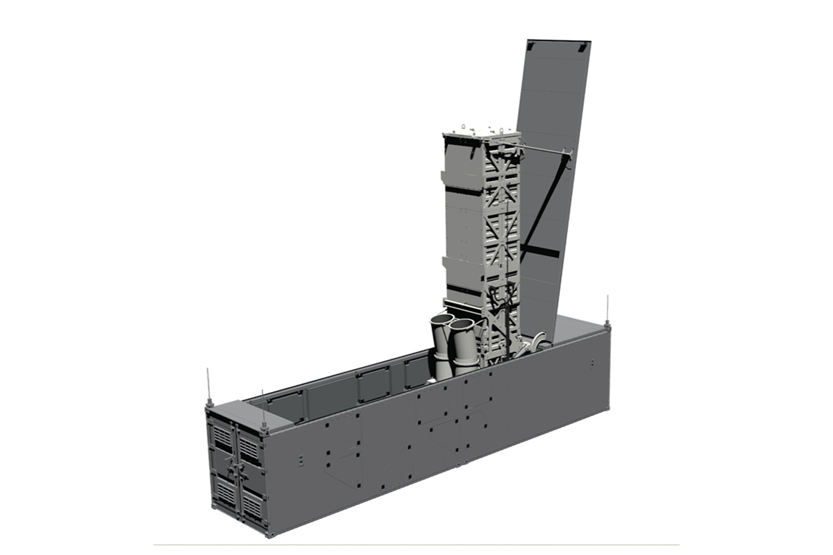 El lanzador Mk70 usado en las pruebas. Integra un lanzador cuádruple del sistema VLS Mk41 en un contenedor de 40 pies (Lockheed Martin)