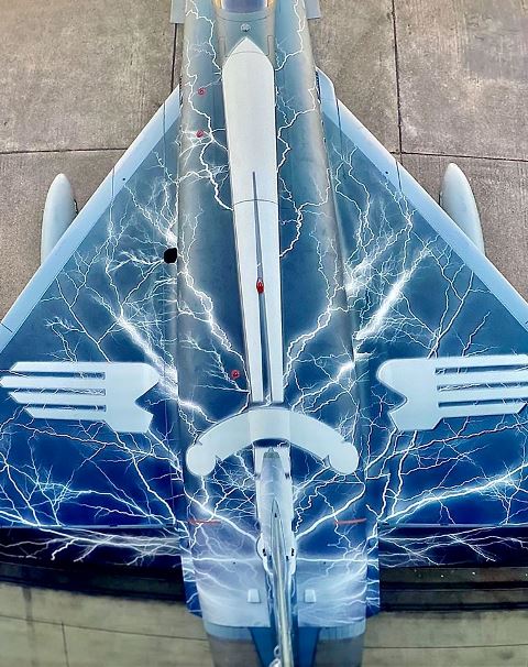 Detalle de la decoración especial pintada en la parte superior del fuselaje y los planos. (foto Luftwaffe).