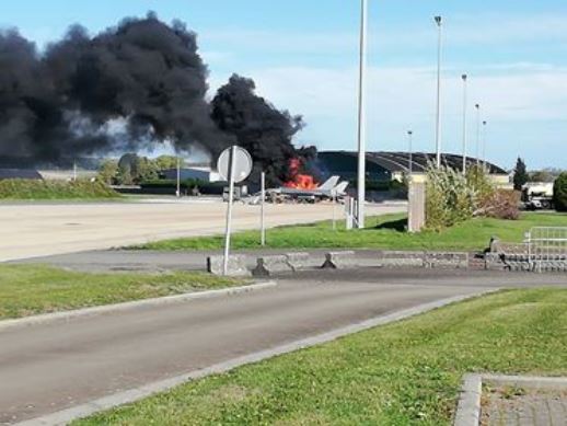 ·El F-16AM matricula FA-128 ardiendo en la plataforma de Florennes. Foto: Scramble.nl