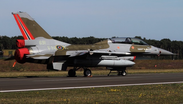 Igualmente en la base de Kleine-Brogel se ha pintado otro de sus F-16AM el FA-124 con una decoración similar y las bandas de invasión, aunque recordando al 349 Squadron (belga) formado en 1942 en el seno de la RAF, y que en 1946 de forma pareja pasaría a formar parte de la Fuerza Aérea de Bélgica, donde todavía sirve integrado en la 10º Ala Táctica. También se vio un biplaza F-16BM del 331 Escuadrón de la Real Fuerza Aérea de Noruega pintado especialmente para celebrar el 75 aniversario del conflicto. Este F-16 biplaza lleva los colores de utilizó el Spitfire IX, matriculado PL258 FN-K, que sirvió en el 331 (Noruego) Squadron de la RAF (Royal Air Force) británica. Curiosamente este caza se estrelló cuando aterrizaba el 29 de diciembre de 1944 en el aeródromo de Tubbergen (Países Bajos), sito a poco más de 200 kilómetros al noreste de Kleine-Brogel. Los restos de este aparato de combate fueron localizados por el equipo de la Norwegian Spitfire Foundation, que está trabajando en su restauración (temporalmente registrado como G-NSFS). (Julio Maíz Sanz)