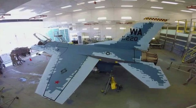 Desde la Base de la Fuerza Aérea de los Estados Unidos de Nellis (Nevada) llegan imágenes de un avión de combate F-16C Fighting Falcon del Escuadrón de Agresores pintado con un nuevo esquema de pintura pixelado muy similar al Su-57 ruso. La librea de este F-16 del 64º Escuadrón de Agresores o 64th Aggressors Squadron (AGRS) es muy similar al que porta el próximo caza furtivo de quinta generación de Rusia, incluyendo las estrellas rojas.