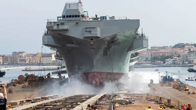 Fotografía: Momento de la botadura del LHD “Triestre” en el Mar Tirreno. (foto: Fincantieri)