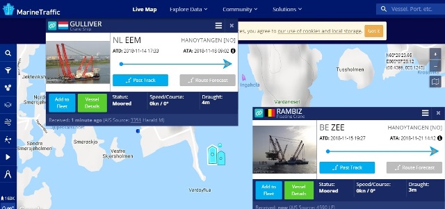 Relevante es que se han desplazado hasta la zona dos grúas sobre barcazas de grandes dimensiones, la “Rambiz” y la “Gulliver”, sin embargo estas tardaron en llegar. La primera lo hizo a la zona el 18 de noviembre y la segunda el pasado 21, si bien es cierto que como puede comprobarse en varias páginas webs que monitorizan la posición de buques civiles, ambas grúas permanecen fondeadas, concretamente al sur de la isla de Vardoyna.