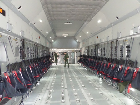 Foto 3: La bodega del Atlas A400M le permite adaptarse a las tropas, equipos, helicópteros y coches y excavadoras de ruedas (Victor M.S. Barreira).