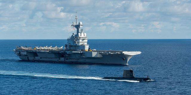 Fotografía: El portaviones Charles de Gaulle durante un ejercicio con un submarino australiano el año pasado (US Navy)