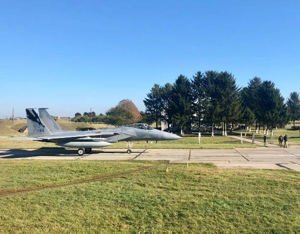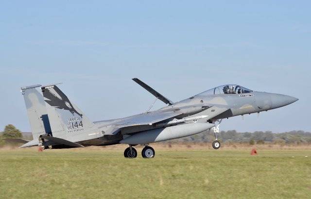 1 Uno de los F-15C de la ANG de California aterrizando en Starokostiantyniv. (foto: USAF)