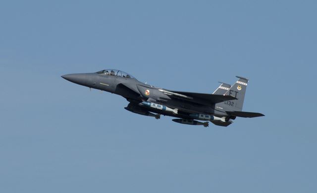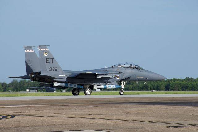 Fotografía: El F-15E usado durante las pruebas, listo para despegar (USAF)