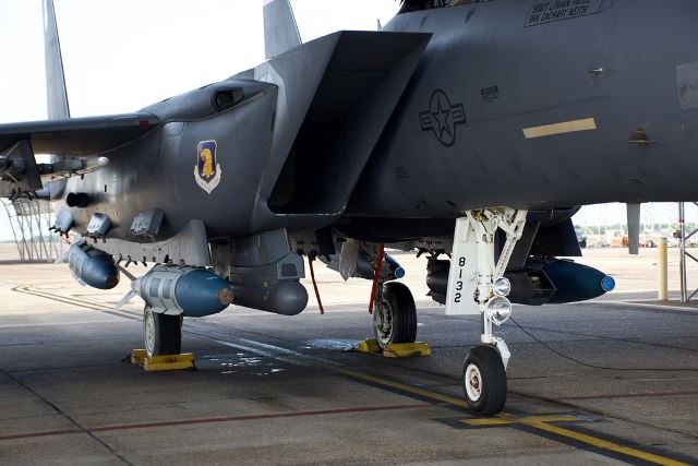La Fuerza Aérea de los Estados Unidos ha evaluado recientemente una nueva configuración de ataque sobre su F-15E, en este caso usando por primera vez bombas guiadas JDAM contra objetivos navales de superficie.