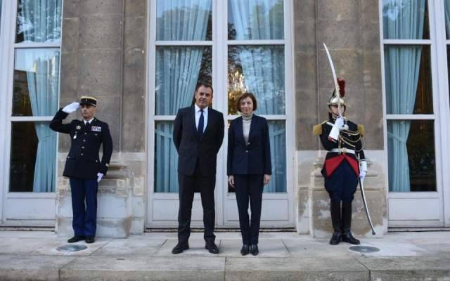 Fotografía: El ministro de Defensa griego, Nikos Panagiotopoulos, y si homóloga francesa, Florence Parly, en París.
