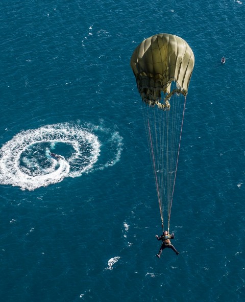 Los efectivos saltan con dos lanchas hinchables medianas que se despliegan desde la parte trasera del avión. También portan varios paquetes con botes salvavidas, equipo médico e inhaladores de oxígeno, que se lanzan en un paquete diferente y, por último, el equipo personal. El equipamiento consta de un traje de inmersión, un chaleco con más útiles, el salvavidas y sobre éste, el paracaídas. Igualmente están dotados con un equipo que se suelta con una cuerda durante el salto con material de supervivencia personal, como víveres, agua y ropa de repuesto.